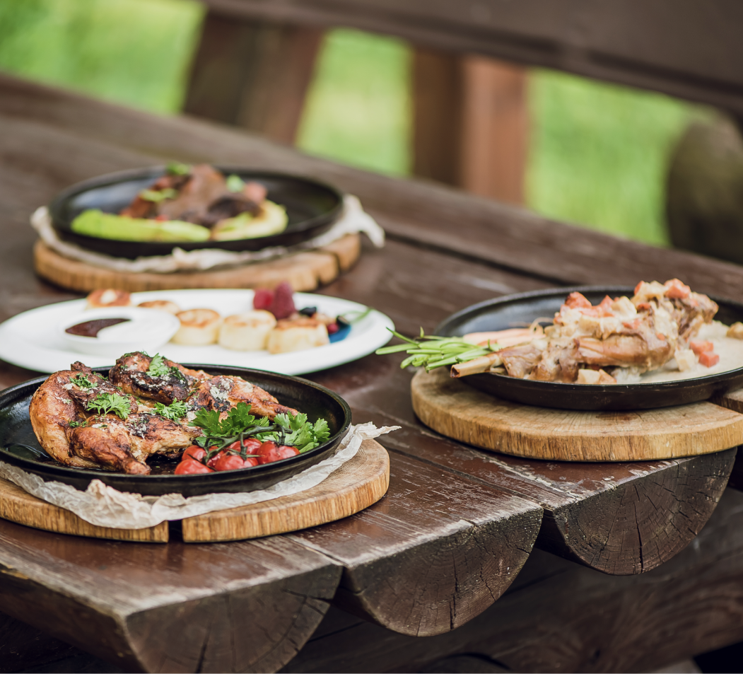 Here you can enjoy the purest forest air, get a charge of vivacity and only a good mood, as well as admire the beauty of beautiful nature and taste delicious dishes from professional chefs!